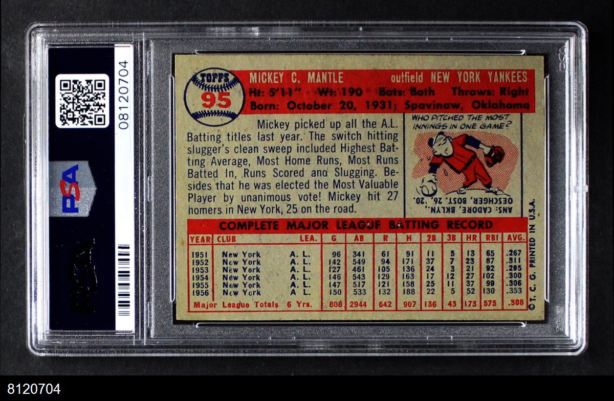 1959 topps mickey mantle card value