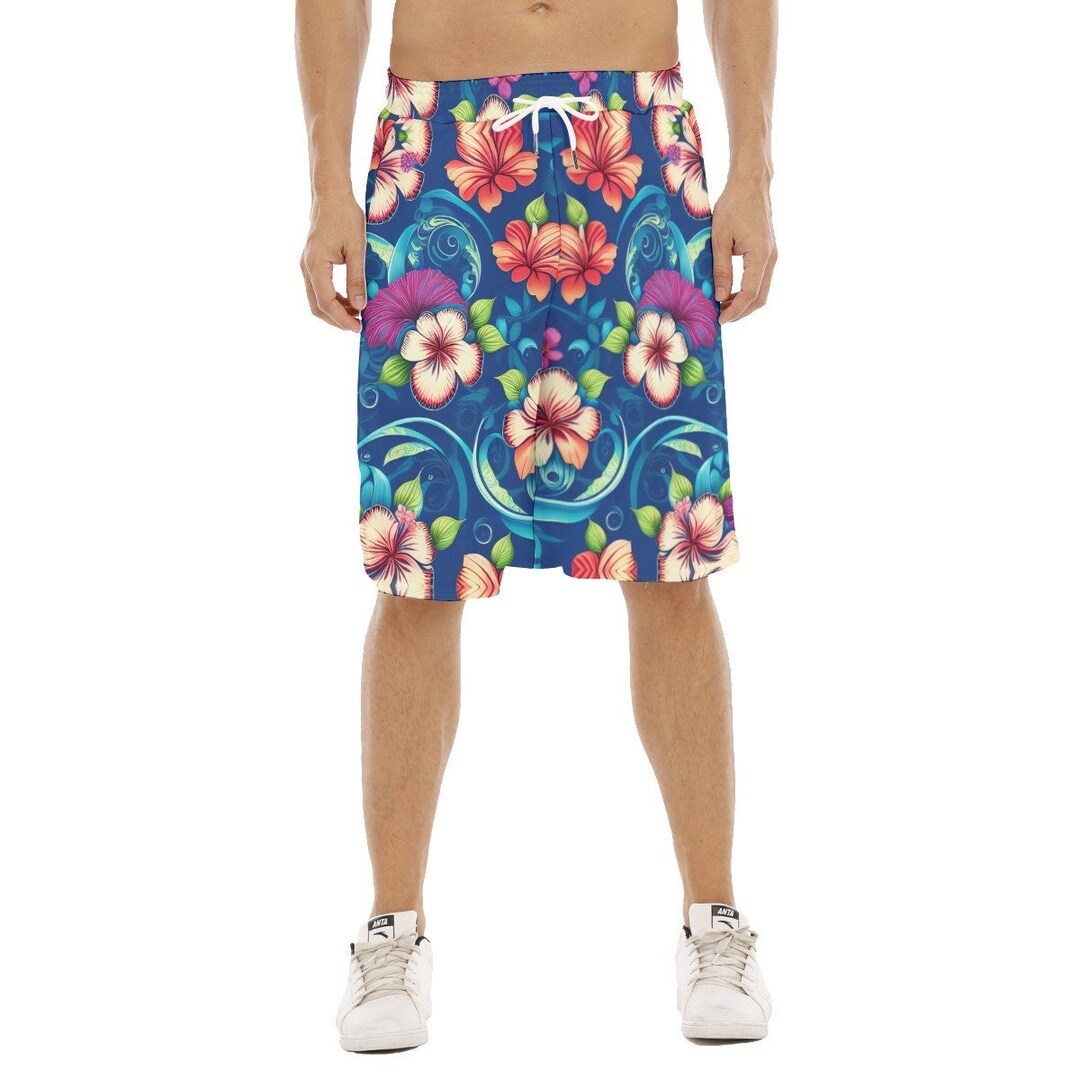 hawaiian hibiscus trim basketball shorts
