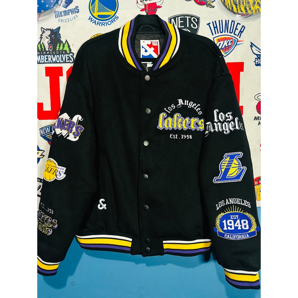 lakers wool varsity jacket