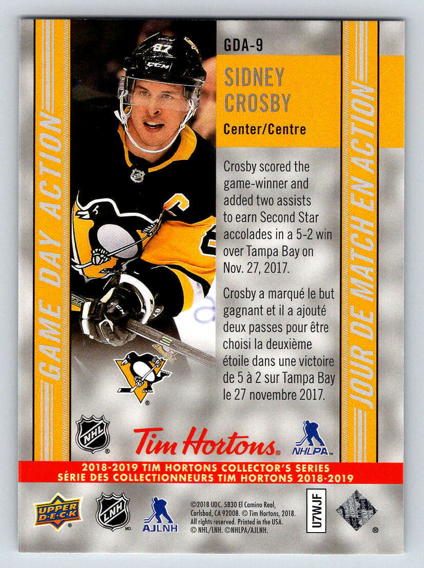 sidney crosby signed tim hortons card