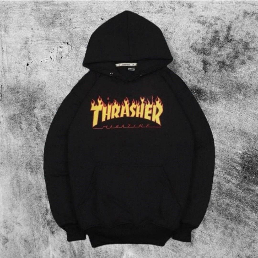 thrasher flame logo black crop hoodie