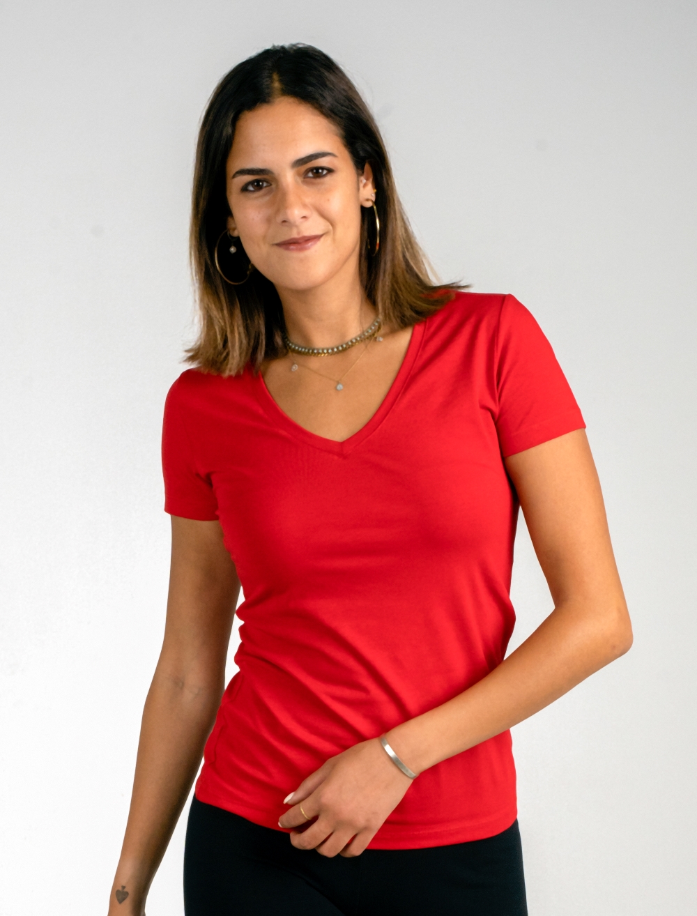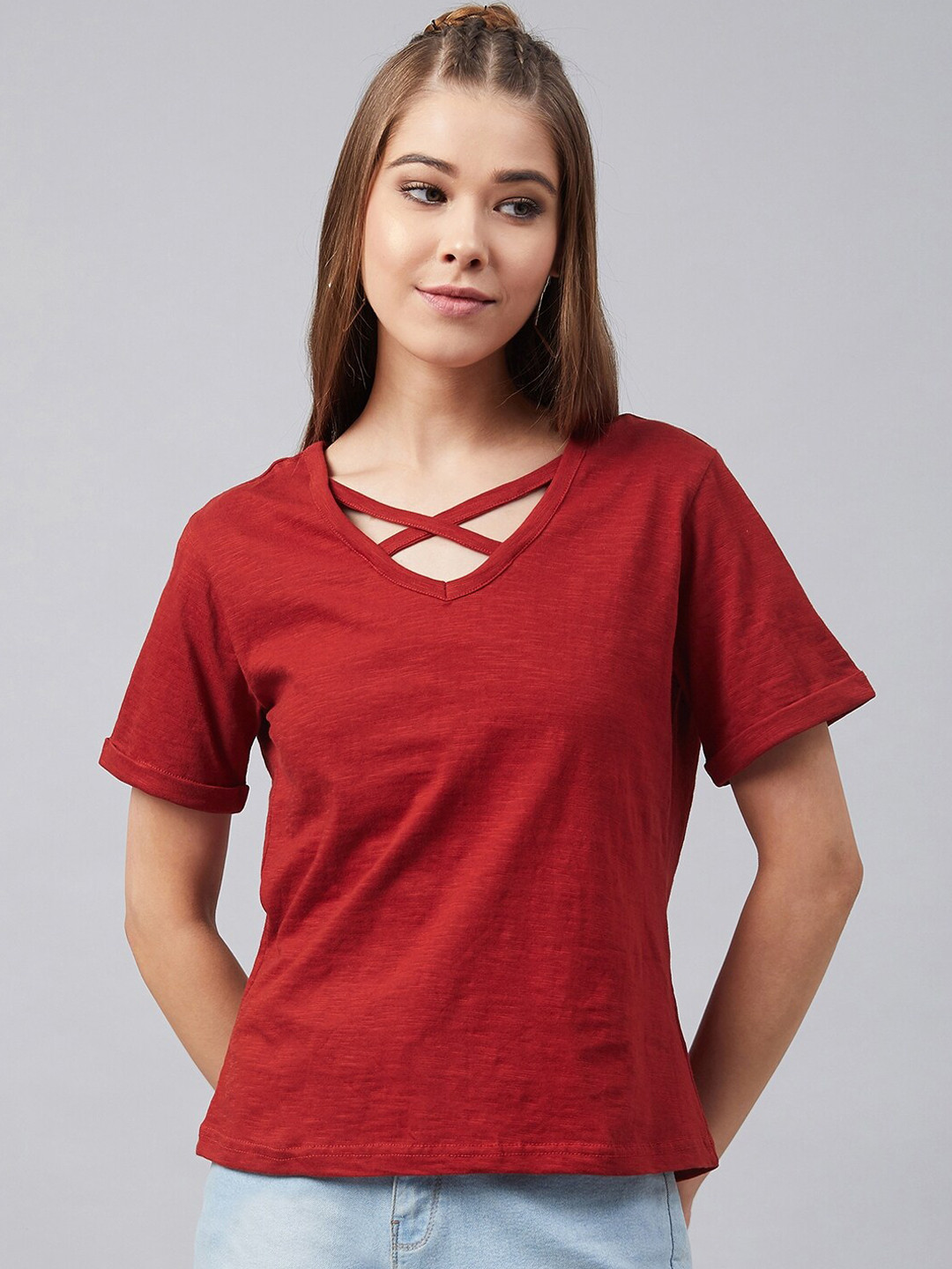 womens red vneck tshirt