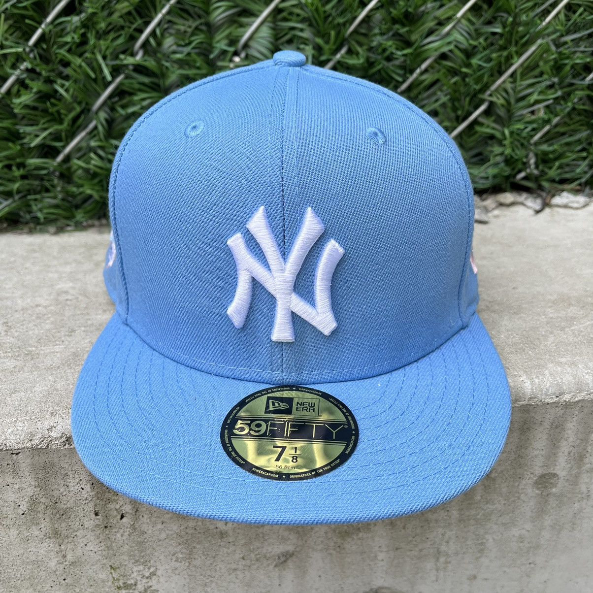 yankee hat with pink brim